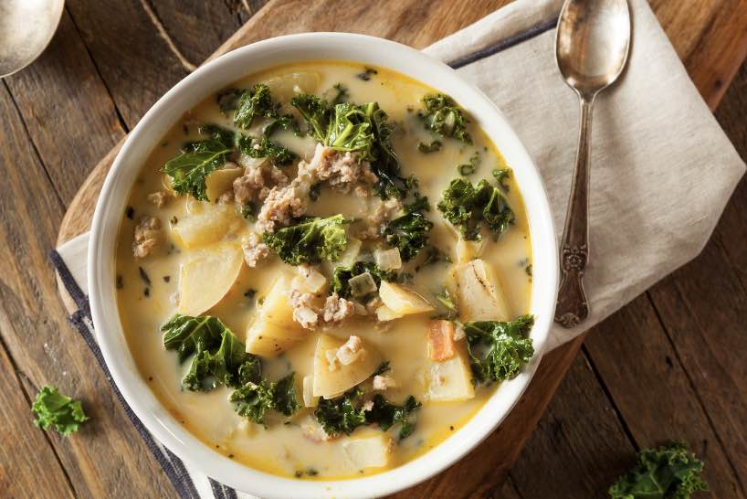 - Add chopped kale and milk to the pot. Cover and cook until kale is wilted. I can make a meal out of this soup!!